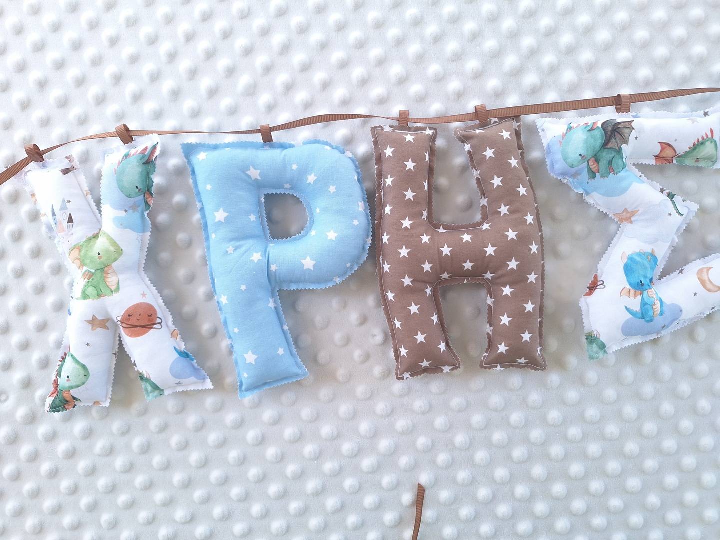 Τα γράμματα είναι ραμμένα στο χέρι με 100% βαμβακερά υφάσματα και έχουν ύψος 18εκ. Δώρο η κορδέλα σε αντίστοιχο χρώμα, για να το κρεμάσετε.
