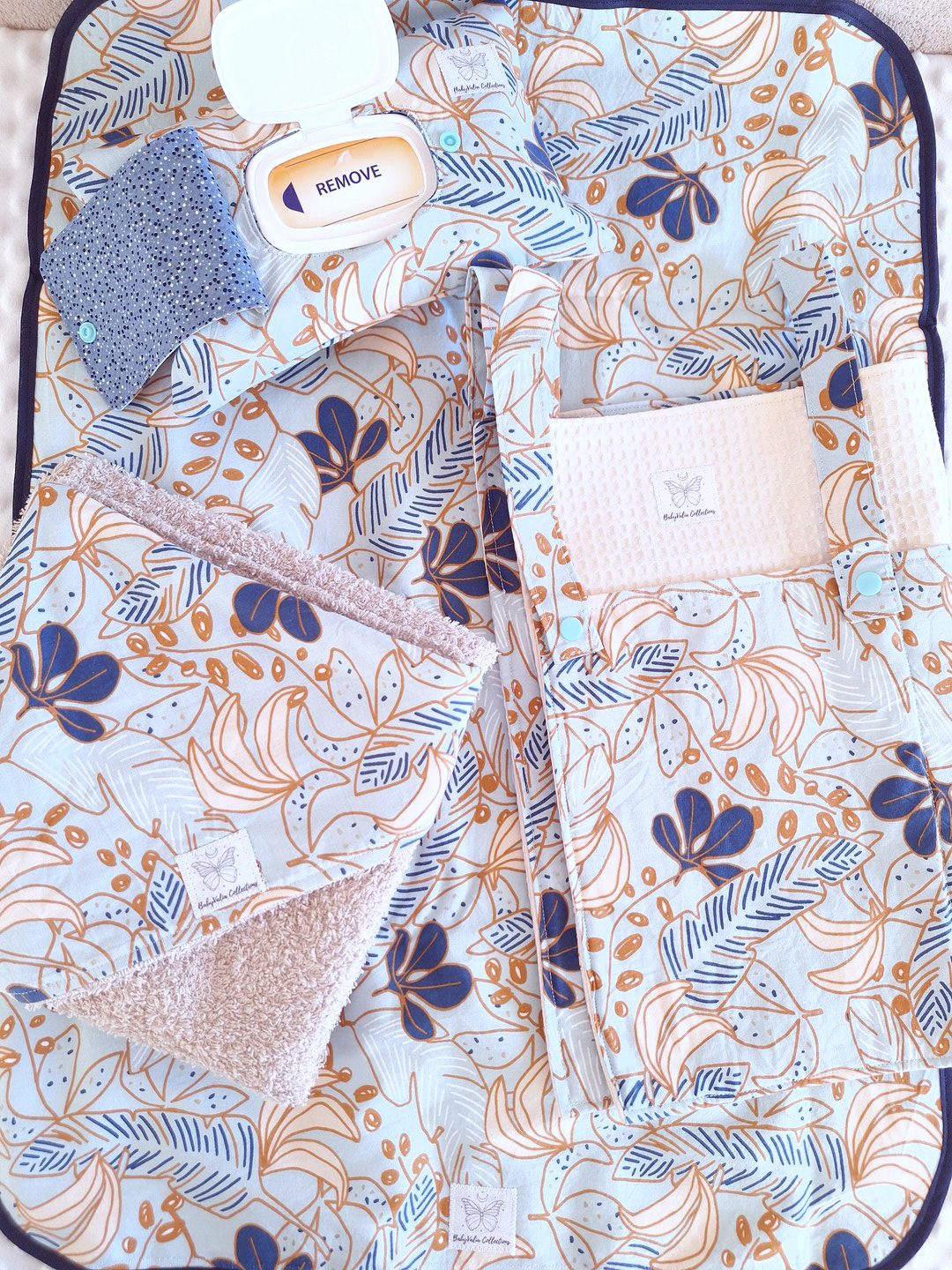 Μέσα στο σετάκι θα βρείτε όλα όσα θα χρειαστεί να έχετε μαζί σας για να αλλάξετε πάνα στο μωρό σας, στα πιο υπέροχα σχέδια της αγοράς! Σε ένα όμορφο & ολοκληρωμένο σετ, με το ίδιο σχέδιο, για ένα υπέροχο αποτέλεσμα!